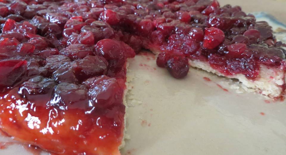Roll out the pie crust and arrange it over the cranberries tucking the edges in around the pan rim. Cut into the crust to allow for venting. Bake for 40 minutes or until the crust is lightly golden. Remove from the oven and allow to cool for five minutes.